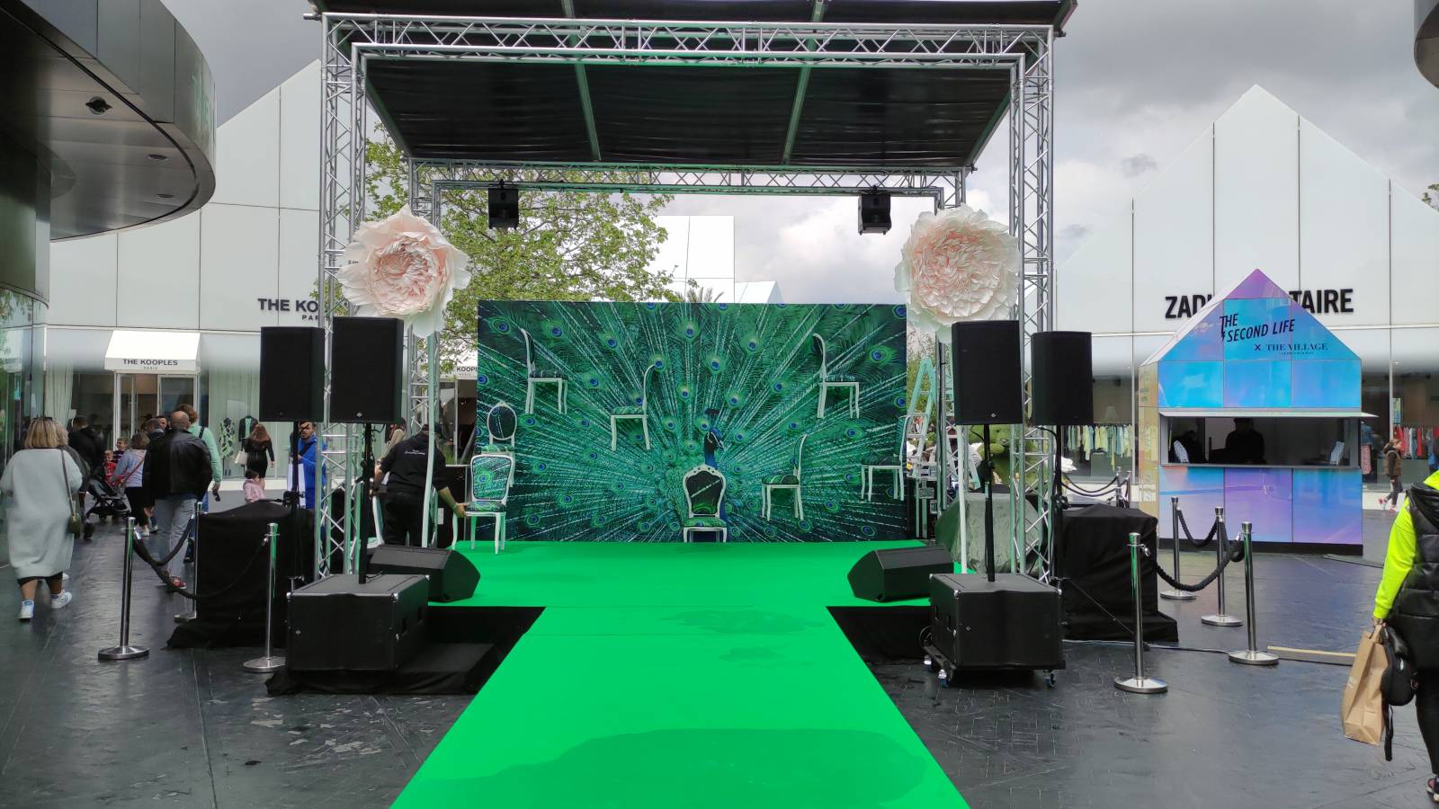 Au-delà du technique, la couverture devient aussi un support de communication visuelle : vous pouvez y suspendre des décors scénographiques et des PLV (kakémonos, bâches imprimées, enseignes...) pour renforcer l'identité de votre événement et maximiser l'impact visuel auprès de votre public.